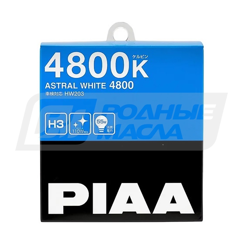 PIAA Astral White H3 12V 55W - галогенная лампа головного света, которая излучает белое свечение цветовой температуры 4800 K. При потребляемой мощности в 55W, реальная светоотдача составляет 110W.